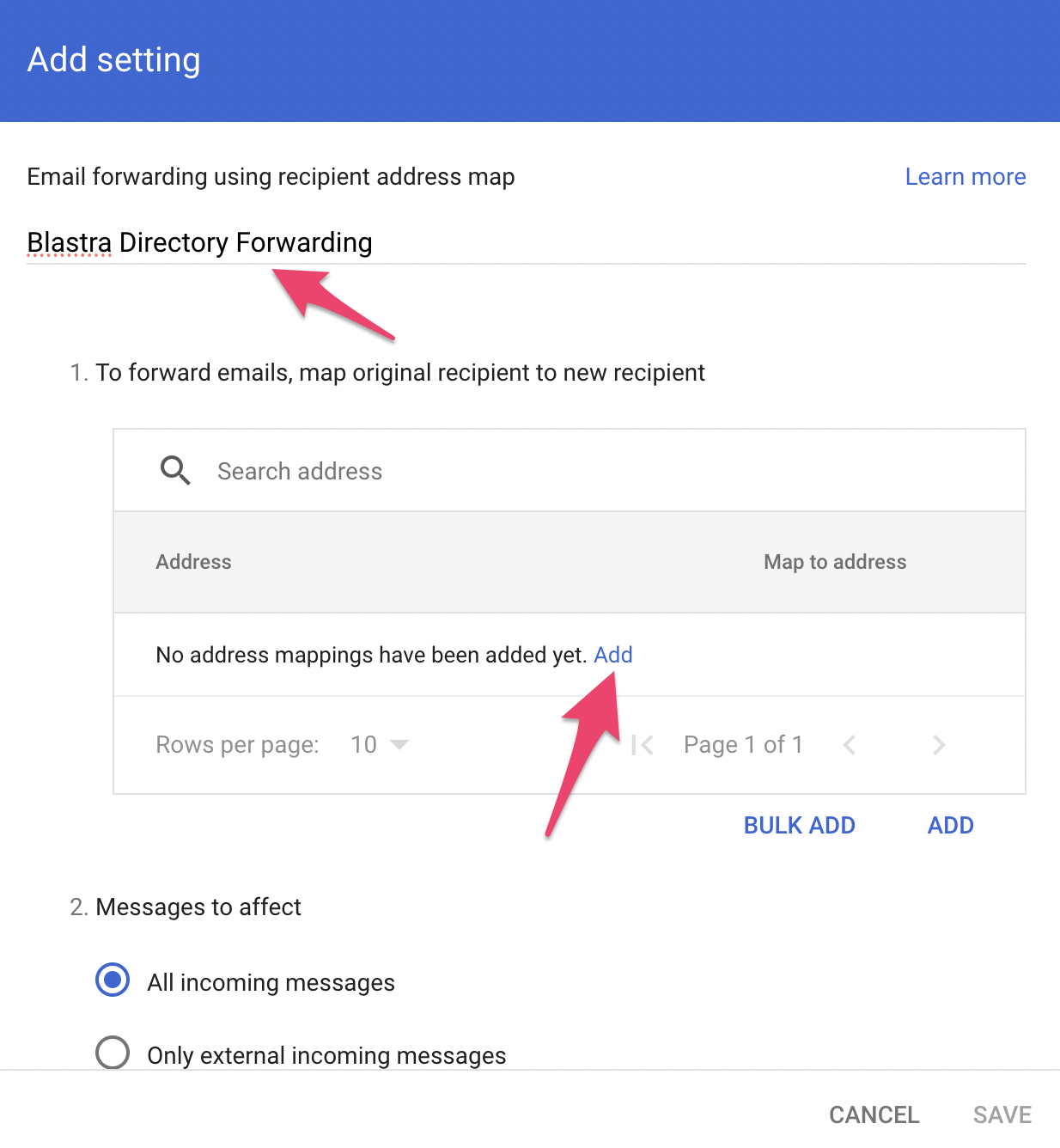 Note: Email forwarding is optional and only required if you choose the direct submission method where Blastra creates directory accounts on your behalf.